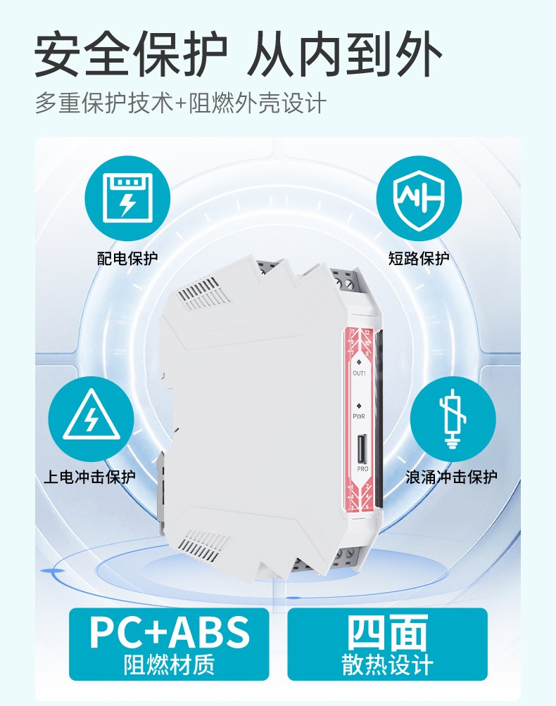 適用場合:隔離器給二、三線制變送器提供隔離的工作電源,將變送器產生的電流信號隔離并轉化為其他儀表所需的信號,實現輸入、輸出、電源之間的三端隔離,從而提高工業過程自動控制系統的抗干擾能力,保證系統的穩定性和可靠性。隔離器可與各類儀表、DCS、PLC 等設備配套使用,在石油、石化、制造、電力、冶金等行業的重大工程中有著廣泛應用。