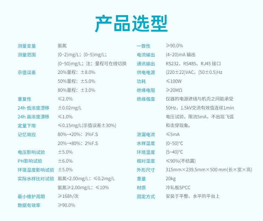 適用場合:NH3N 型氨氮水質在線分析儀采用水楊酸分光光度法檢測,符合《氨氮水質在線自動監測儀技術要求及檢測方法》(HJ 101)、《水質 氨氮的測定 水楊酸分光光度法》(HJ 536)、《污染物在線自動監控(監測)系統數據傳輸標準》(HJ 212)、《地表水自動監測儀器通信協議技術規定》等標準和規范的要求。