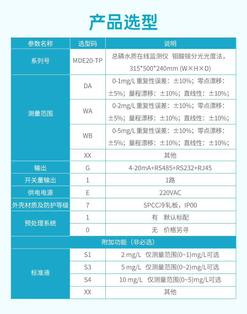 適用場合:TP 型總磷水質(zhì)在線分析儀采用鉬酸銨分光光度法檢測,符合《總磷水質(zhì)自動分析儀技術(shù)要求》(HJ/T 103)、《水質(zhì) 總磷的測定 鉬酸銨分光光度法》(GB 11893)、《污染物在線自動監(jiān)控(監(jiān)測)系統(tǒng)數(shù)據(jù)傳輸標(biāo)準(zhǔn)》(HJ 212)、《地表水自動監(jiān)測儀器通信協(xié)議技術(shù)規(guī)定》等標(biāo)準(zhǔn)和規(guī)范的要求。