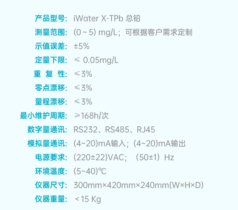 適用場合:河流湖泊水質監測、工業污水、廢水監測