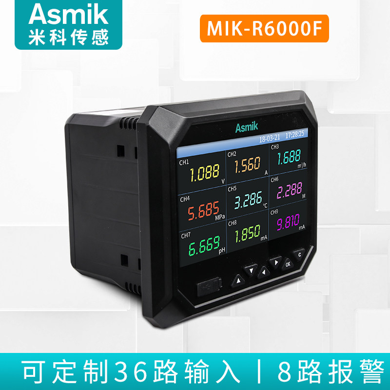 米科MIK-R6000F無紙記錄儀是將工業現場的各種需要監視記錄的輸入信號,比如熱電阻和熱電偶的溫度信號、流量計的流量信號、壓力變送器的壓力信號等。通過高性能微處理器進行數據處理,一方面在高分辨液晶顯示屏幕上以多種形式的畫面顯示出來,另一方面把這些監察信號的數據存放在儀表內部的大容量存儲芯片內,以便在儀表上直接進行數據和圖形查詢、翻閱和打印。